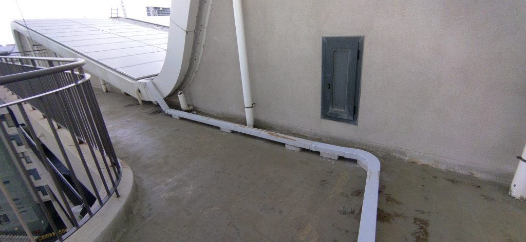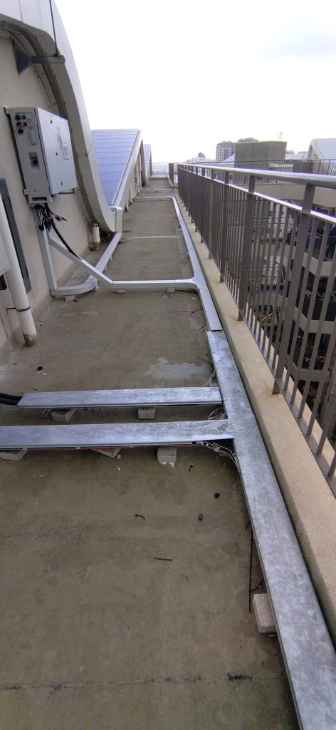• Inversores: La instalación está equipada con cinco inversores, cada uno asignado a un edificio distinto dentro del complejo Mid Harbour Estate. Estos inversores convierten la corriente continua generada por los paneles solares en corriente alterna, lista para su inyección a la red eléctrica.
